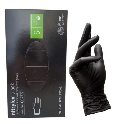 Рукавички нітрилові оглядові нестерильні неприпудрені, чорні, (S) (100шт/уп)