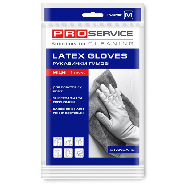 Рукавички універсальні гумові (латексні) (М) з напиленням, міцні, Standart, (1пара в уп.), PRO SERVICE