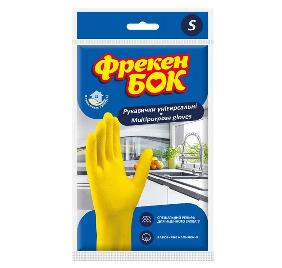 Рукавички універсальні гумові (S) суперчутливі (1пара в уп.), жовті/фіолетові, ФРЕКЕН БОК