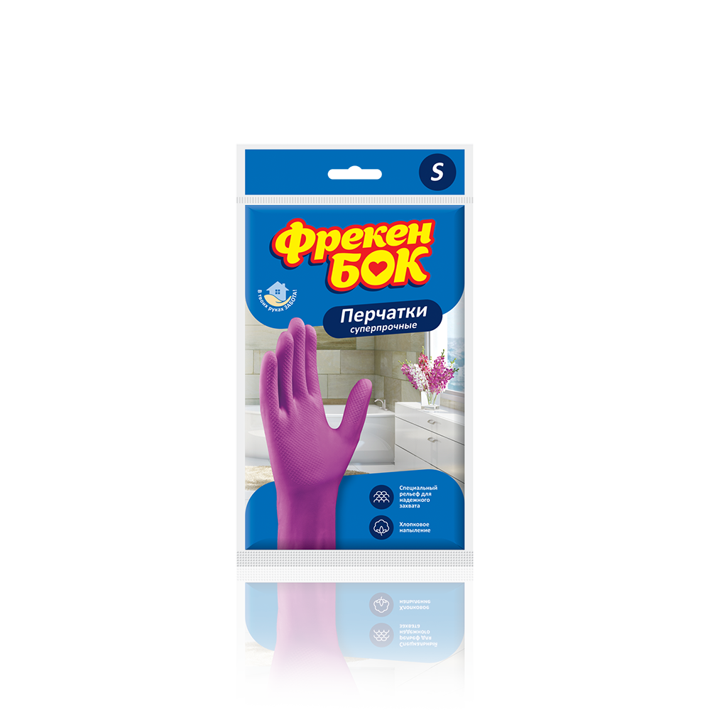 Рукавички гумові універсальні міцні S (1 пара в уп) рожеві ФРЕКЕН БОК