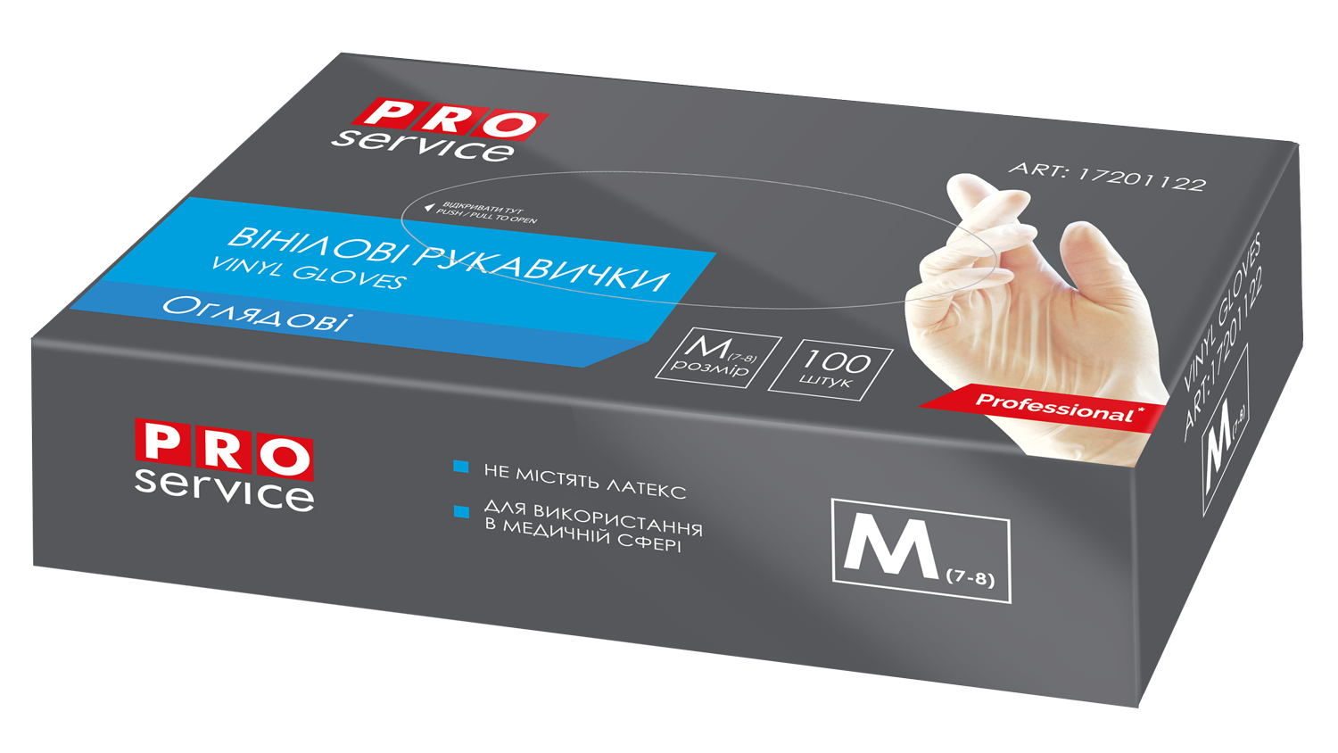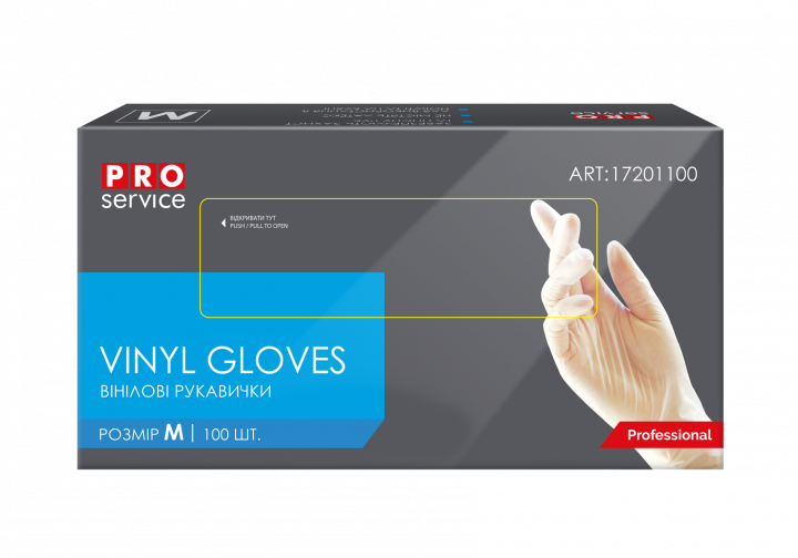 Рукавички вінілові одноразові (М) (100шт в уп.) PRO SERVICE