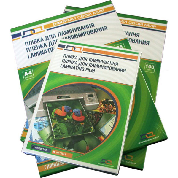 Плівка для ламінування А4 216х303мм глянцева 200мкм, 100шт