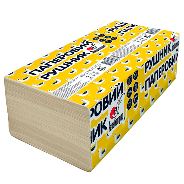 Рушники паперові листові V-складання 1-шарові 200арк. (230х240мм) зелені, АЛЬБАТРОС