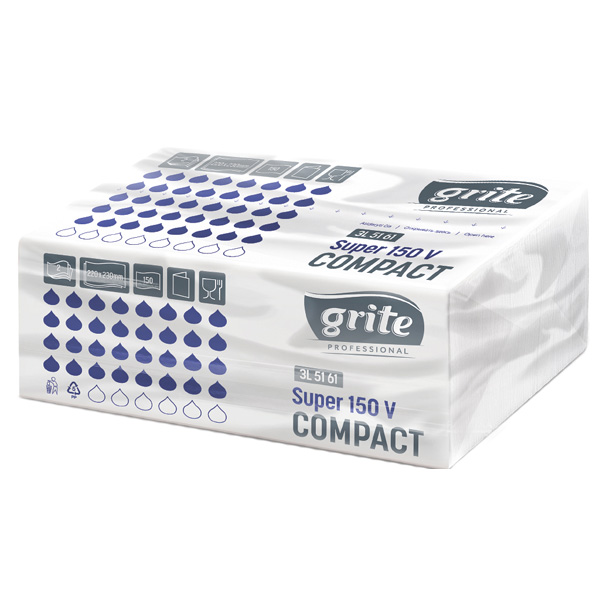Рушники паперові листові V-складання 2-шарові 150арк. (220х230мм), SUPER, білі, GRITE