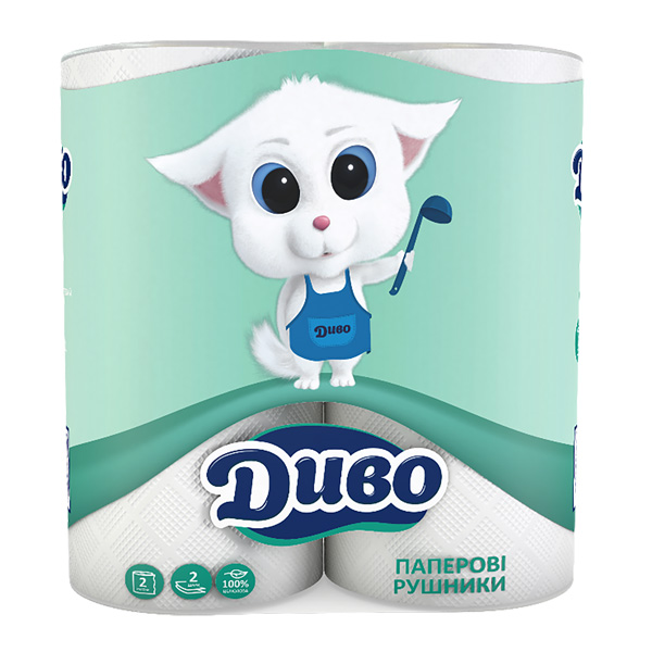 Рушники паперові рулонні 2-шарові 50 відр., 230х220 мм, 2 шт., білі, ДИВО