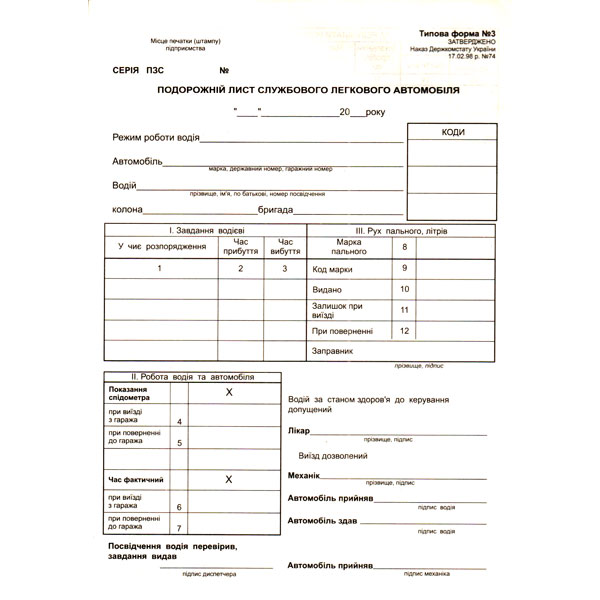 Подорожній лист легкового авто, газетка, А5 100арк. нумерац