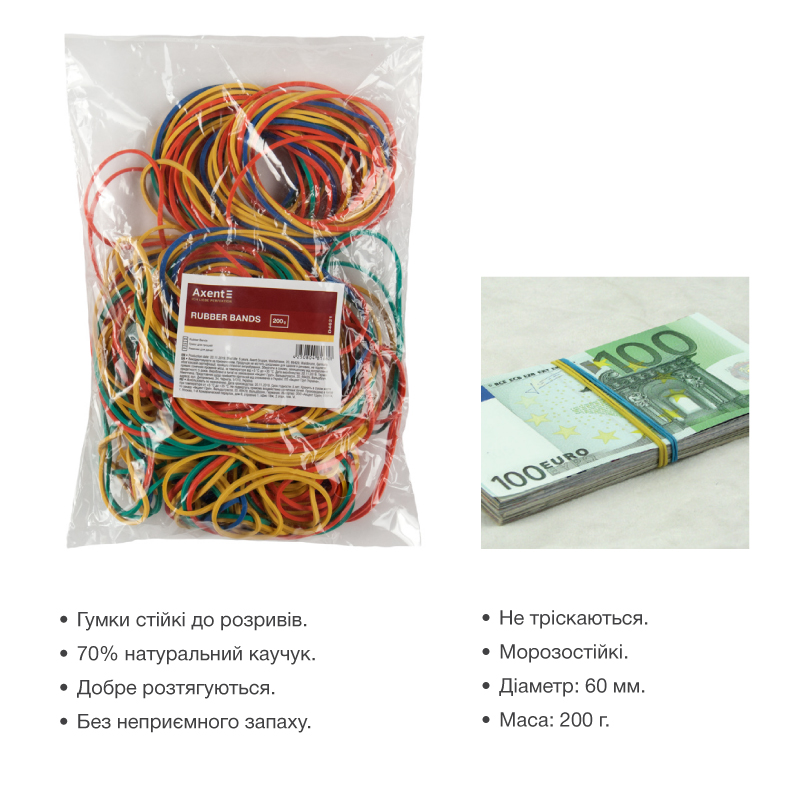 Гумки для грошей 200 г, асорті, Delta AXENT
