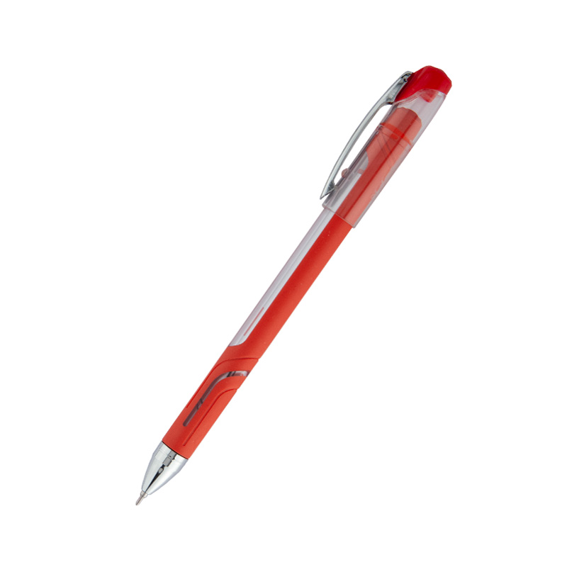Ручка кулькова з непрозорим прогумованим пластиковим корпусом, прозорими вставками і металічним кліпом. Довжина лінії 10 000 м.Чорнило підвищеної в'язкості забезпечує суперм'яке письмо. Колір корпусу відповідає кольору чорнила. Пишучий вузол 1 мм. Колір чорнила і корпуса: червоний.