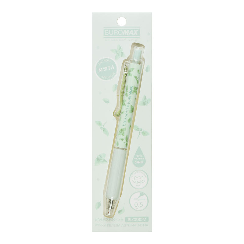 Ручка гелева автоматична BLOSSOM, 0.5 мм, ароматний грип, М'ята, сині чорнила, в блістері