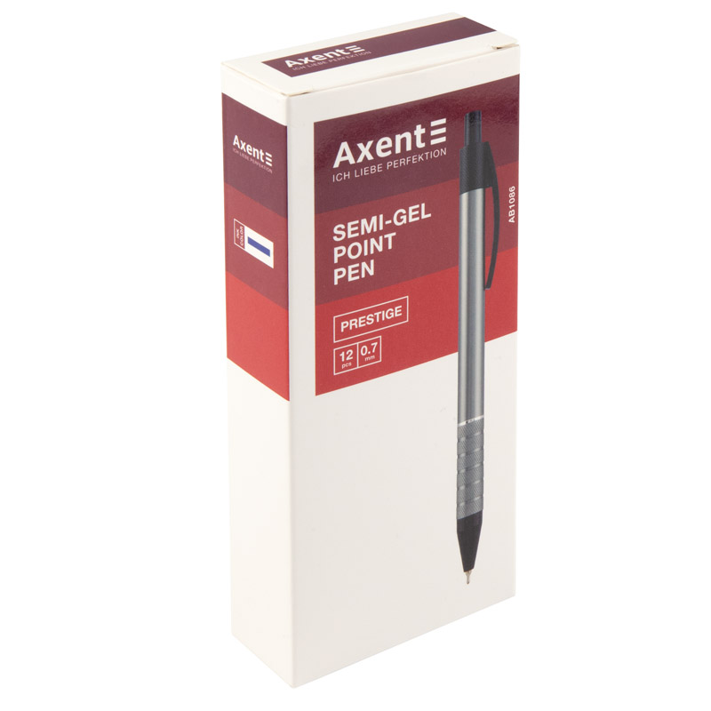 Ручка масляна автоматична 0,7 мм Prestige, корпус сірий, синя, AXENT