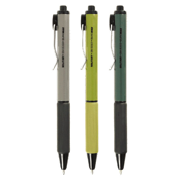 "Автоматична масляна ручка Military від BUROMAX – строгий та виконаний в актуальних кольорах мілітарі пишучий інструмент для офісу, промисловості, дому, польових умов, навчання, тощо. Така ручка призначена для користувачів, які цінують мінімалізм і комфорт одночасно, може підкреслювати мужність та стиль свого власника.