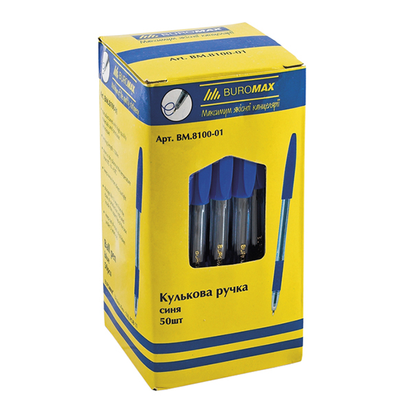 Ручка кулькова 0,7 мм BM.8100-01, прогум.грип, корпус прозорий, синя, BUROMAX