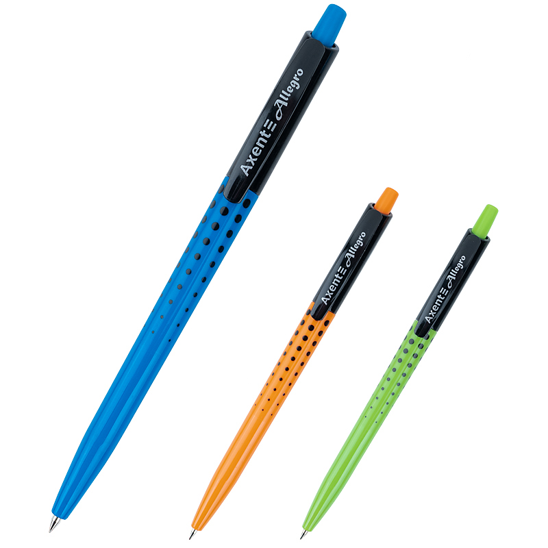 Ручка кулькова автоматична 0,5 мм Allegro DB1041, корпус асорті, синя, AXENT