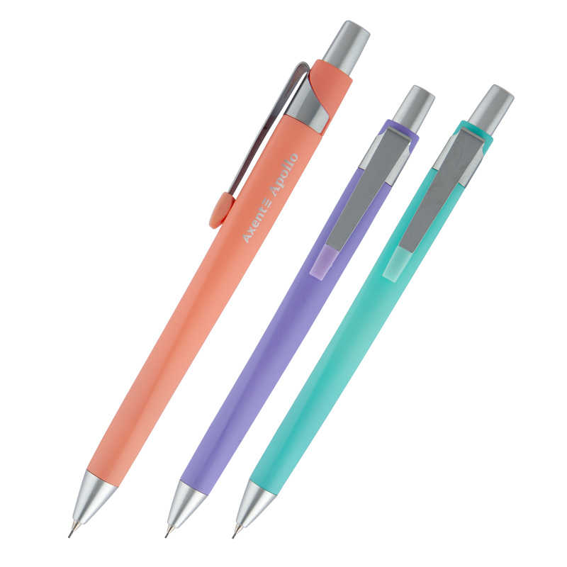 Олівець механічний Apollo. Кольоровий пластиковий корпус пастельних кольорів. Твердість НВ. Вбудований ластик. Діаметр стержня 0,5 мм.