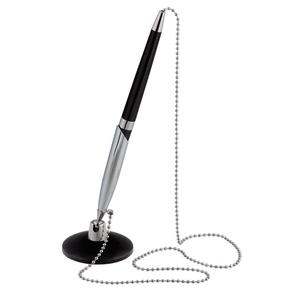 Ручка кулькова на підставці з метал. ланцюжком Silver Desk Pen, корпус чорний/хром, синя, BUROMAX