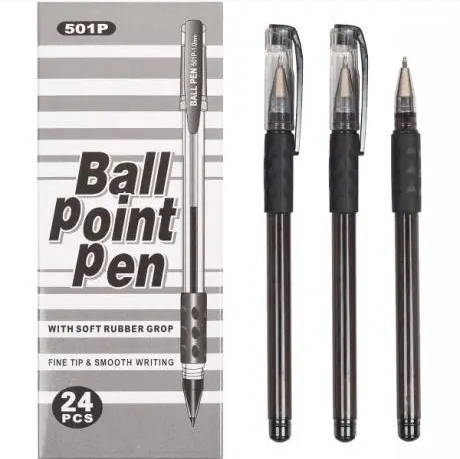 Ручка кулькова 501P, прогум. грип, чорна
