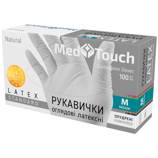 Рукавички латексні одноразові розмір M припудрені, 100 шт. MedTouch