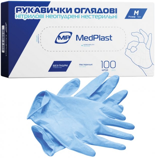Рукавички нітрілові одноразові, нестерильні, оглядові, без пудри (M), 100 шт. MedPlast