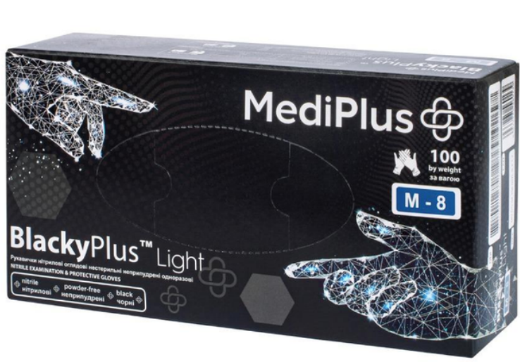 Рукавички нітрилові BlackyPlus лайт розмір M, чорні 50 пар в упаковці