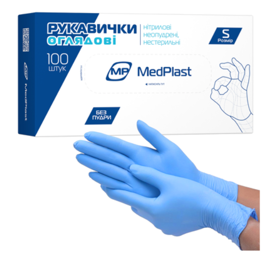 Рукавички нітрілові одноразові, нестерильні, оглядові, без пудри (S) (100шт в уп.)