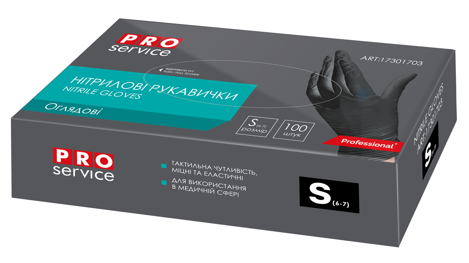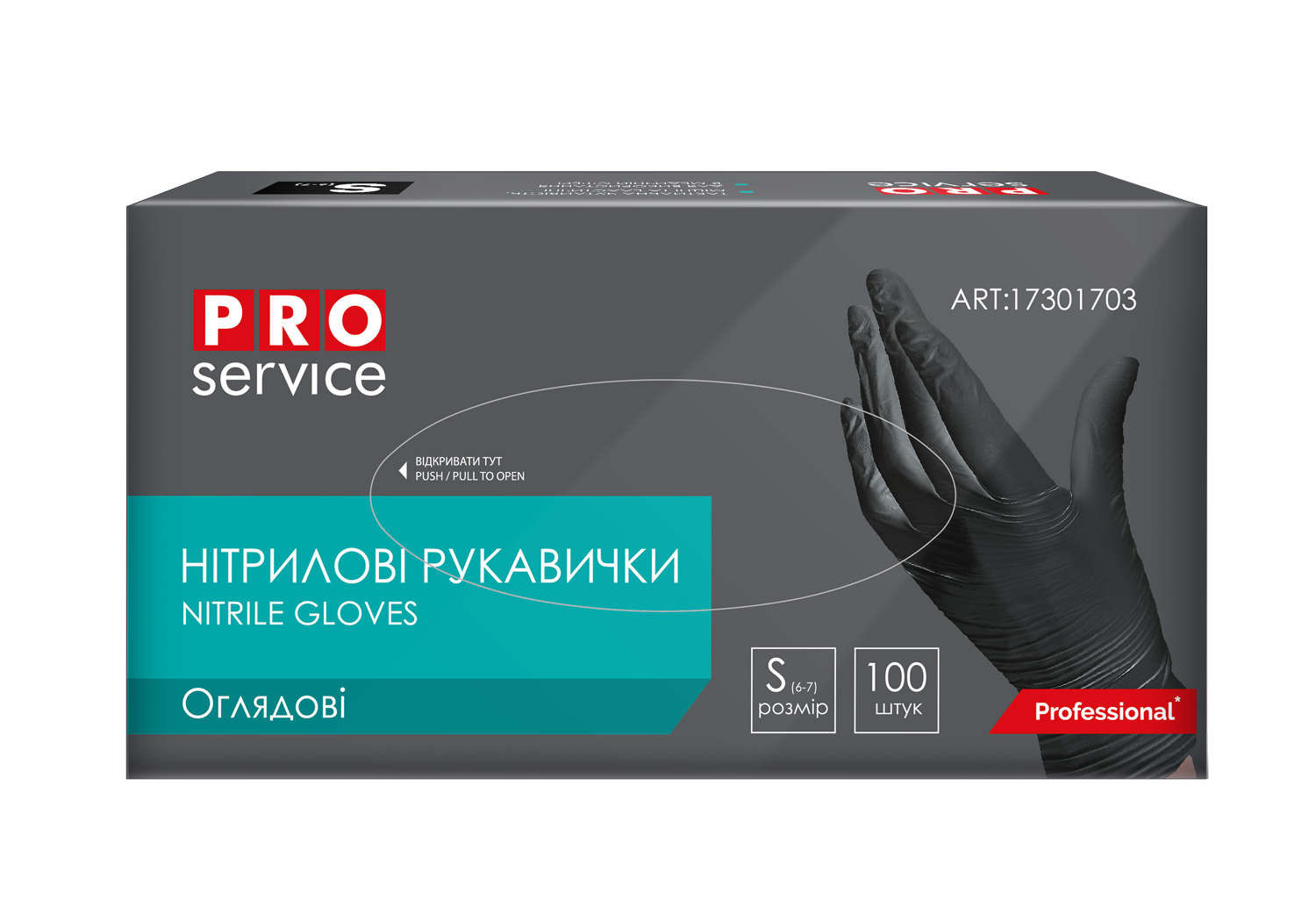Рукавички нітрилові оглядові нестерильні неприпудрені чорні (S) (100шт/уп)