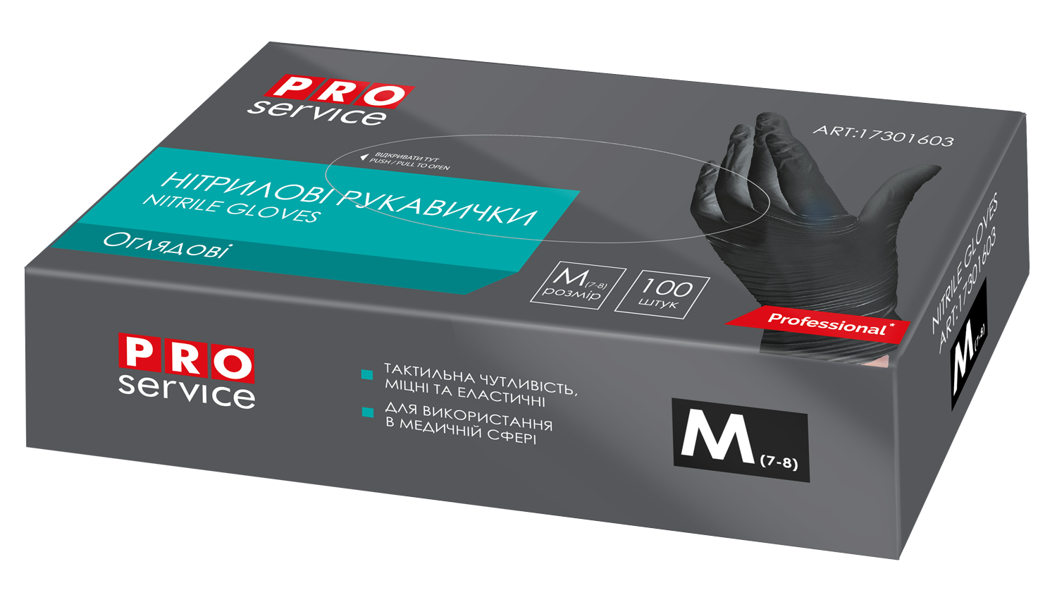 Рукавички нітрилові оглядові нестерильні неприпудрені чорні (M) (100шт/уп)