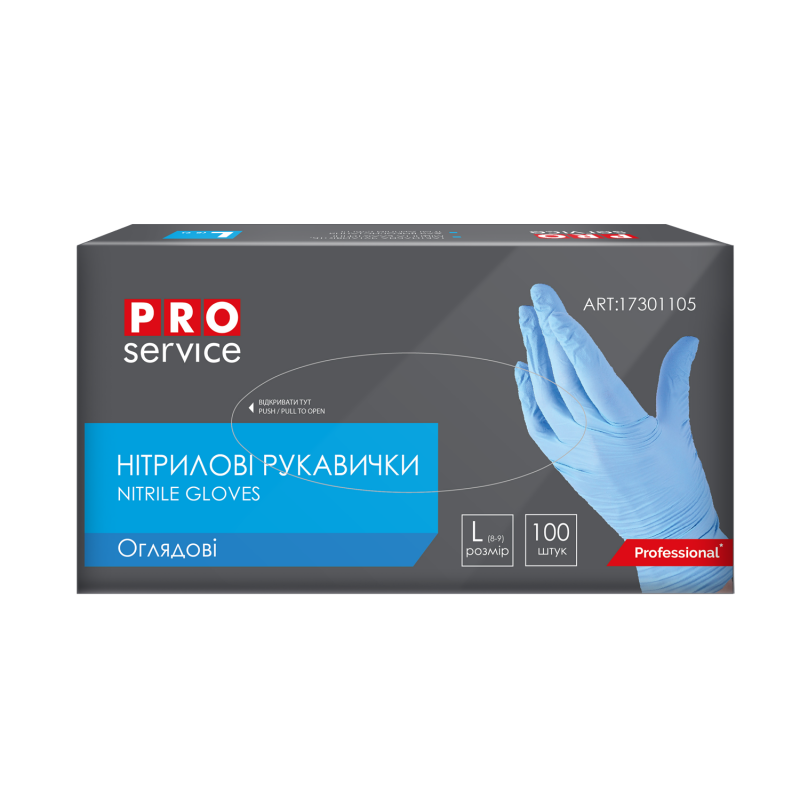Рукавички нітрилові оглядові нестер. неприпуд.,світло-блакитні, 100шт/уп, L (10уп/ящ) BS PROFESSIONAL PRO SERVICE