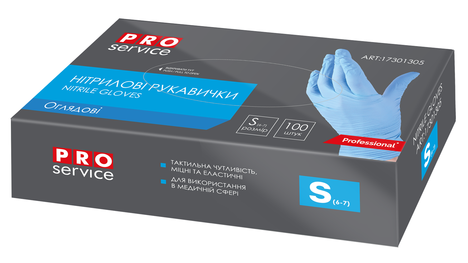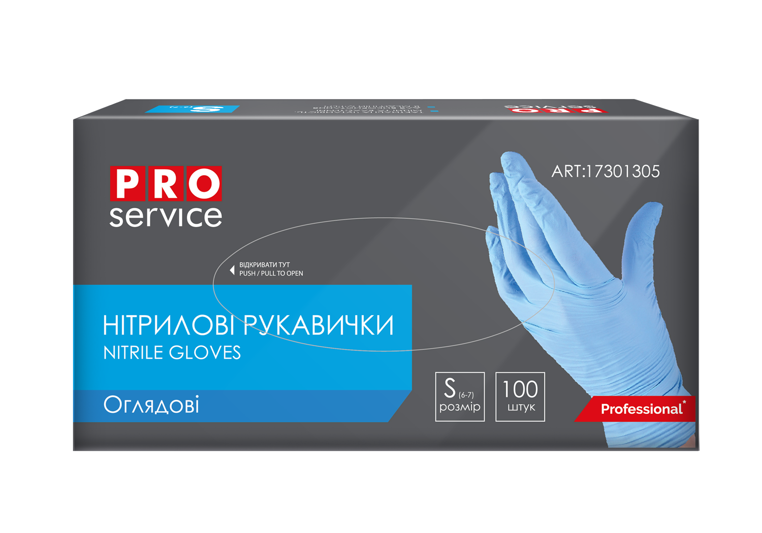 Рукавички нітрилові оглядові нестер. неприпуд.,світло-блакитні, 100шт/уп, S (10уп/ящ) BS PROFESSIONAL PRO SERVICE