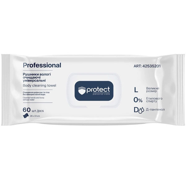 Рушники вологі очищаючі універсальні, 60шт, PROTECT
