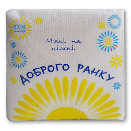 Серветки паперові 1-шарові, ДОБРОГО РАНКУ, 24х24см ( 100шт в пач)