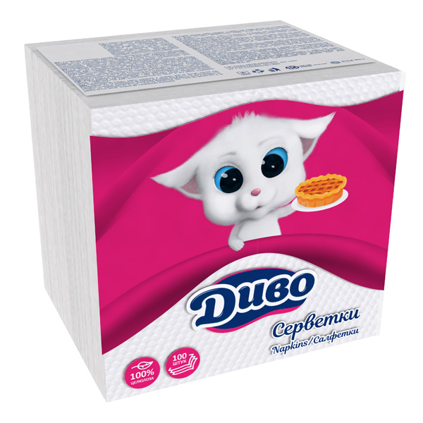 Серветки паперові 1-шарові, ДИВО, колір білий, 24х24см ( 100шт в пач)