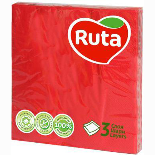 Серветки паперові 33х33см 20шт 2-шарові червоні РУТА