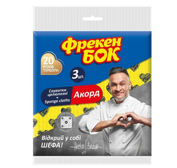 Серветки целюлозні для прибирання Аккорд, (3шт в пач) ФРЕКЕН БОК