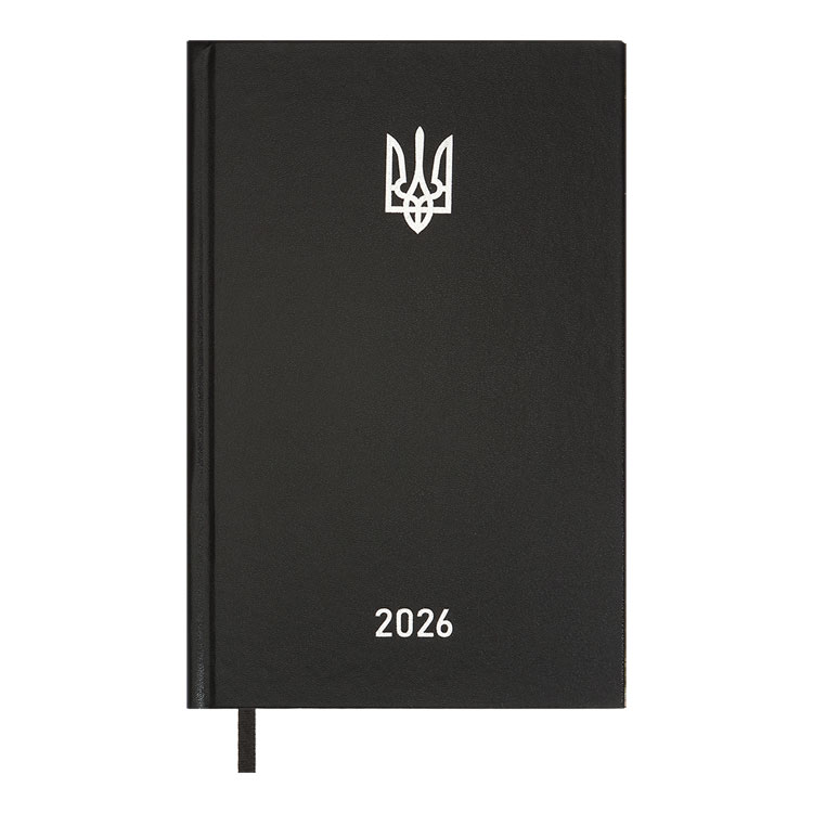 Жорстка обкладинка щоденника AIRY виконана з бумвінілу в лаконічному дизайні з нанесенням Тризуба та року срібною фольгою на лицьовій стороні.