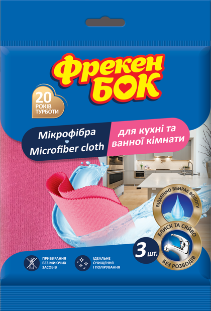 Серветка з мікрофібри для кухні та ванної кімнати (3шт/уп), ФРЕКЕН БОК