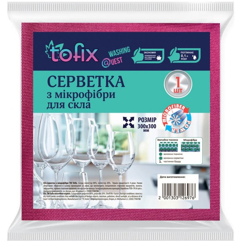 Серветка з мікрофібри для скла, 1шт.