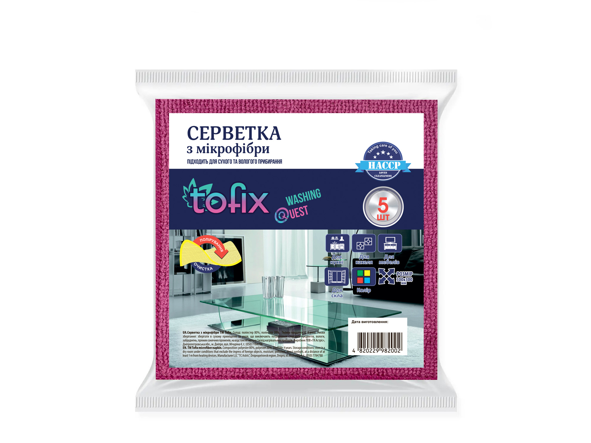 Серветки з мікрофібри універсальні 30х30 5шт.,