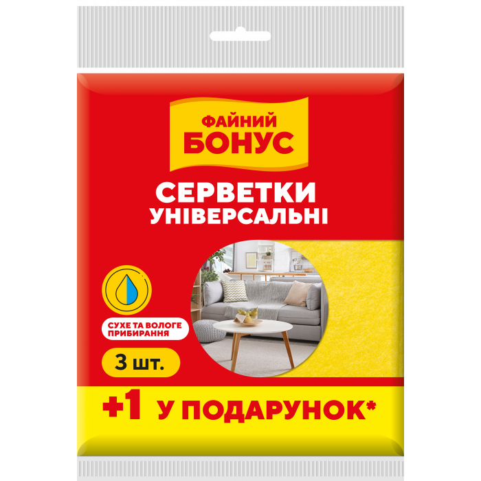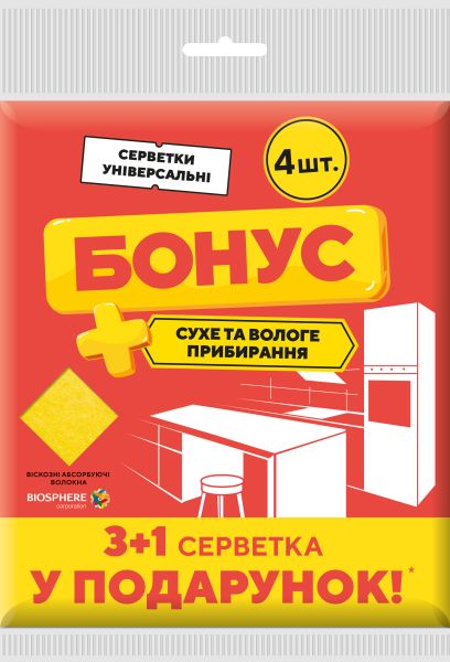 Серветки для прибирання віскозні (3+1 шт у пач) БОНУС
