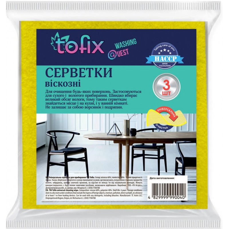 Серветки віскозні універсальні 30х36см (3шт в уп.) TOFIX