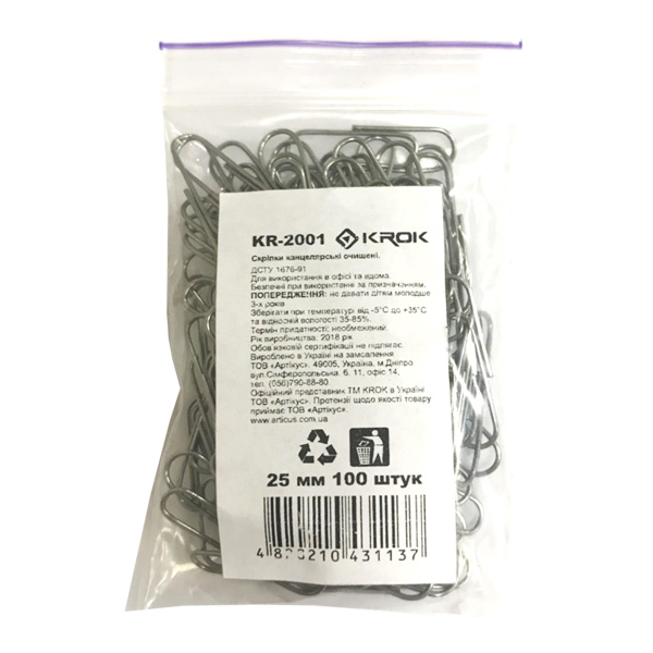 Скріпки канцелярські 25мм KR-2001 100шт KROK