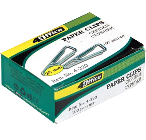 Скріпки канцелярські 25мм трикутні 100шт, 4OFFICE