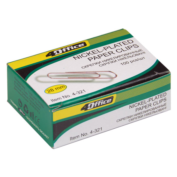Скріпки канцелярські 28мм закруглені, 100шт, 4-321 4OFFICE