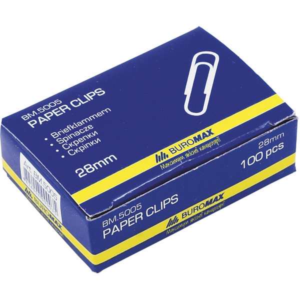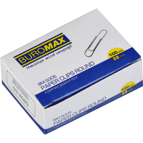 Скріпки канцелярські 28мм закруглені, нікельовані, BUROMAX