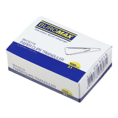 Скріпки канцелярські 31мм трикутні, нікельовані 100шт, JOBMAX