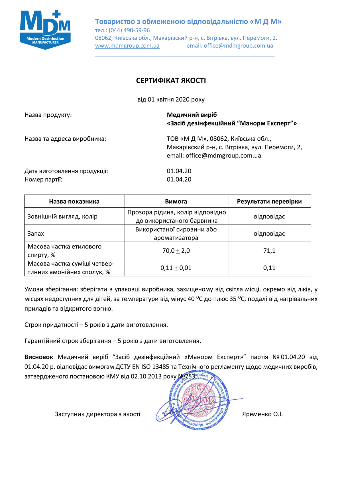 Засіб для дезінфекції Експерт, 1000мл МАНОРМ