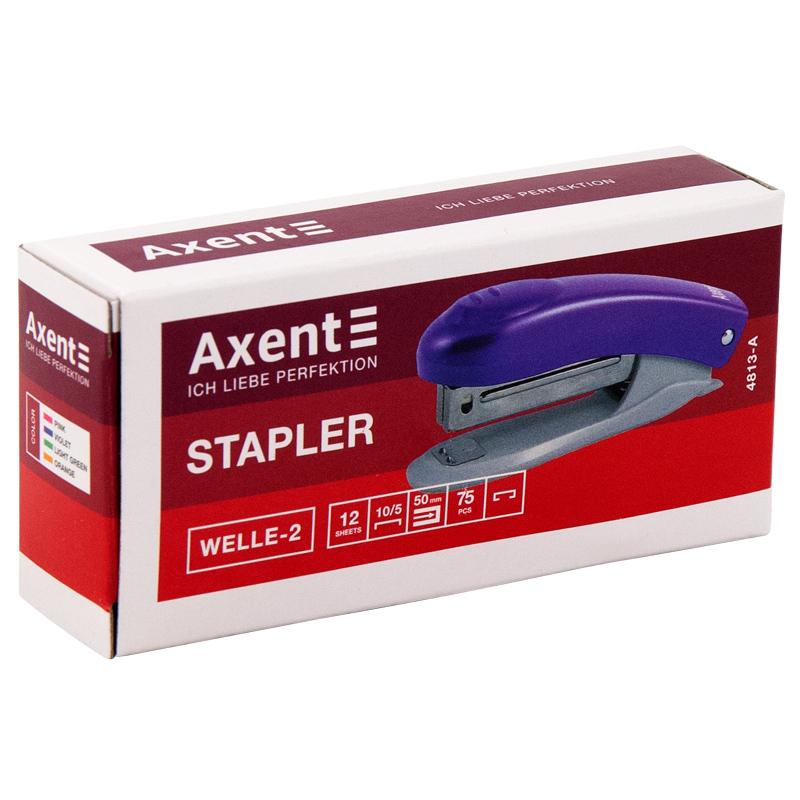 Степлер пластиковий 12 аркушів, №10, Welle-2, фіолетовий, AXENT