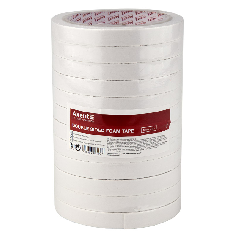 Стрічка клейка 12мм*2м двостороння на пінній основі, AXENT