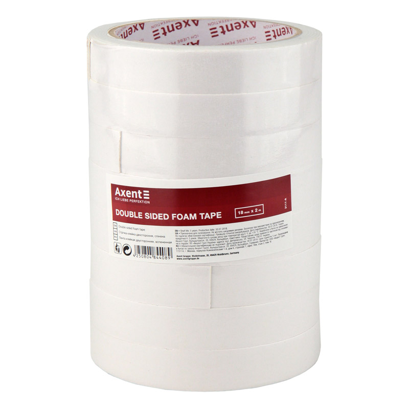 Стрічка клейка 18мм*2м двостороння на пінній основі, AXENT