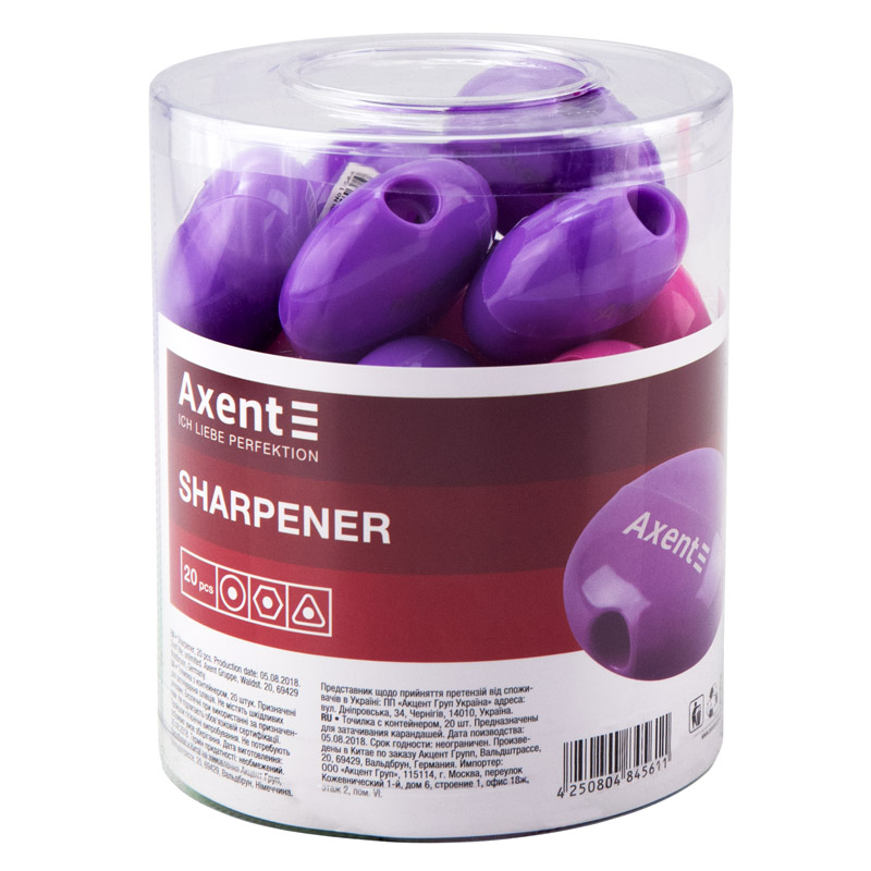Точилка Axent 1154-A з контейнером виготовлена з пластику. Гостре лезо забезпечує легке й акуратне заточування. Відвантаження: асорті кольорів в пластиковому тубусі.