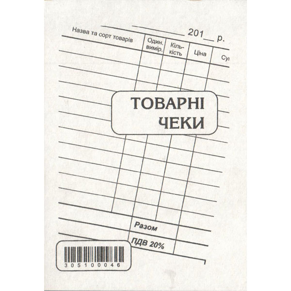 Чек товарний А6 1+0 100арк. самокоп